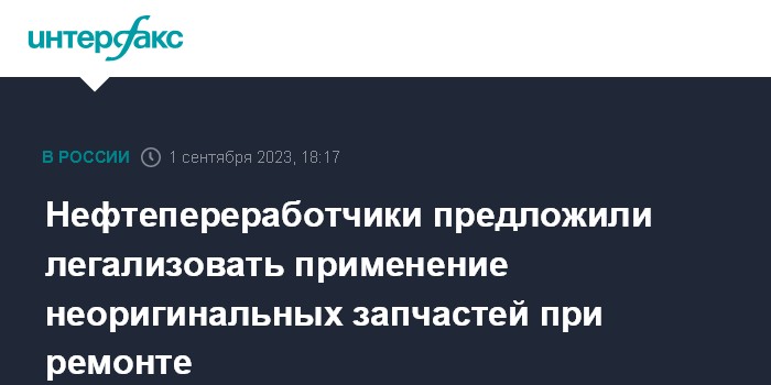 Нефтепереработчики предложили легализовать применение неоригинальных запчастей при ремонте