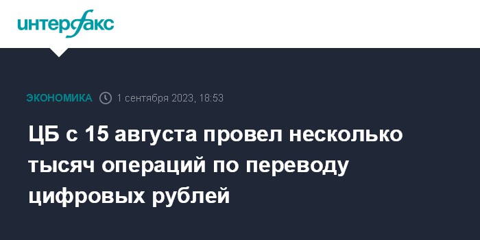 ЦБ с 15 августа провел несколько тысяч операций по переводу цифровых рублей