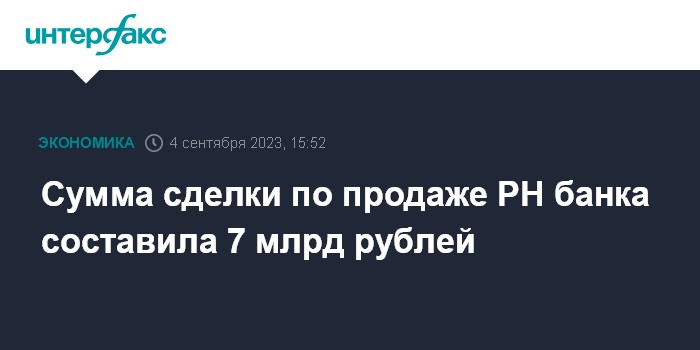Сумма сделки по продаже РН банка составила 7 млрд рублей