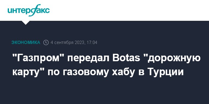 "Газпром" передал Botas "дорожную карту" по газовому хабу в Турции