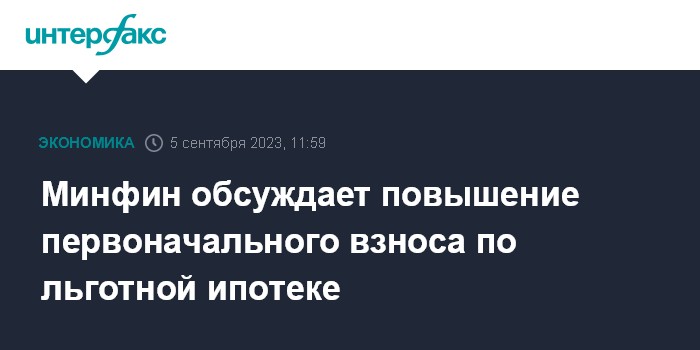Москва. 5 сентября. INTERFAX.RU - Минфин РФ обсуждает возможность повышения минимального первоначального взноса в рамках программы льготной ипотеки и изменения величины субсидии банкам,рассказал журналистам директор департамента финансовой политики Минфина Иван Чебесков.