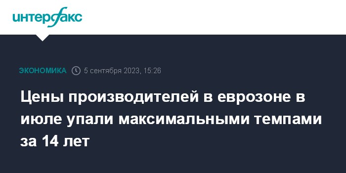 Цены производителей в еврозоне в июле упали максимальными темпами за 14 лет