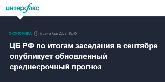 ЦБ РФ по итогам заседания в сентябре опубликует обновленный среднесрочный прогноз