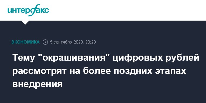 Тему "окрашивания" цифровых рублей рассмотрят на более поздних этапах внедрения