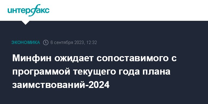 Минфин ожидает сопоставимого с программой текущего года плана заимствований-2024