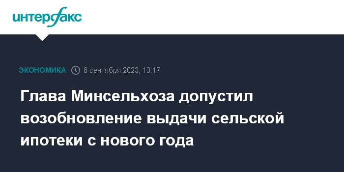 Глава Минсельхоза допустил возобновление выдачи сельской ипотеки с нового года