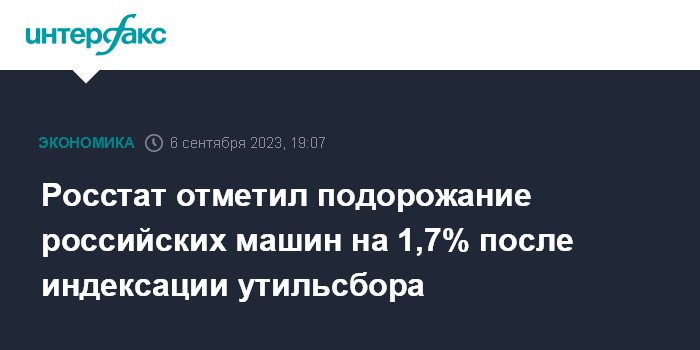 Росстат отметил подорожание российских машин на 1,7% после индексации утильсбора