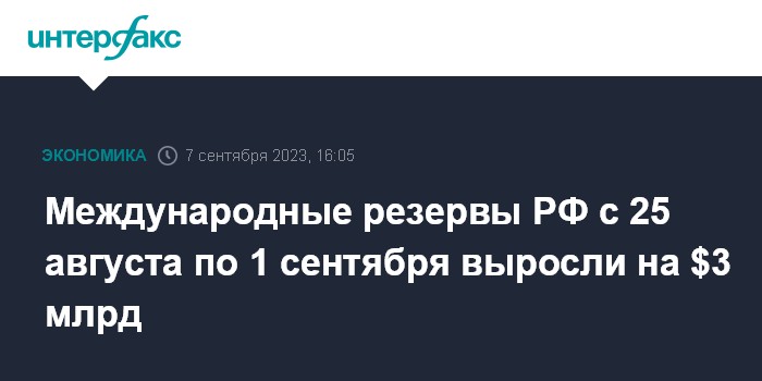 Международные резервы РФ с 25 августа по 1 сентября выросли на $3 млрд
