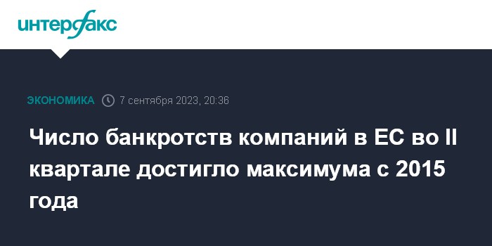 Число банкротств компаний в ЕС во II квартале достигло максимума с 2015 года