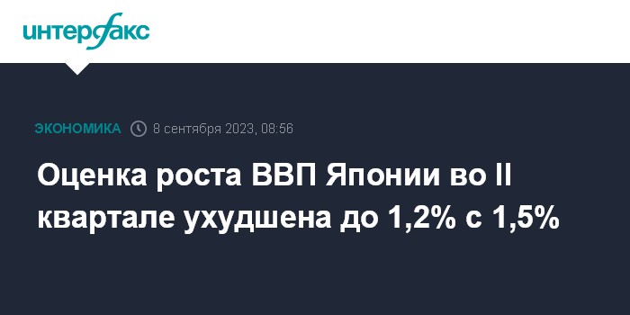 Оценка роста ВВП Японии во II квартале ухудшена до 1,2% с 1,5%