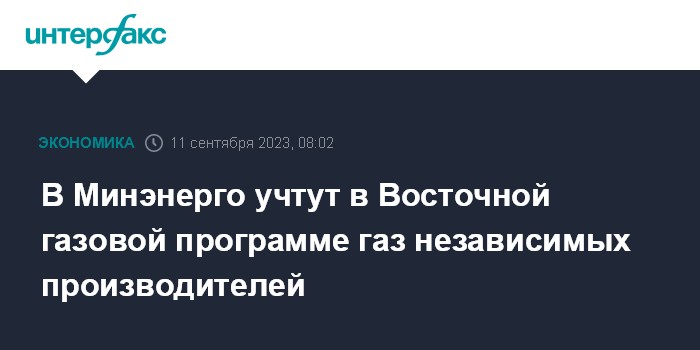 В Минэнерго учтут в Восточной газовой программе газ независимых производителей