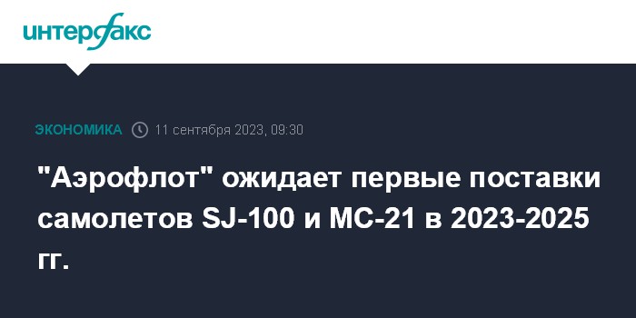 Первые два SJ-100 планируются к поставке в декабре 2023 года, первый МС-21, а также Ту-214 "Аэрофлот" рассчитывает получить в IV квартале 2024 года, говорил ранее Александровский.