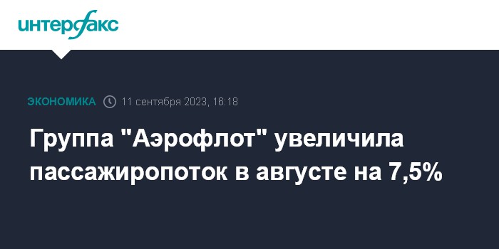 Группа "Аэрофлот" увеличила пассажиропоток в августе на 7,5%