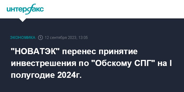 "НОВАТЭК" перенес принятие инвестрешения по "Обскому СПГ" на I полугодие 2024г.