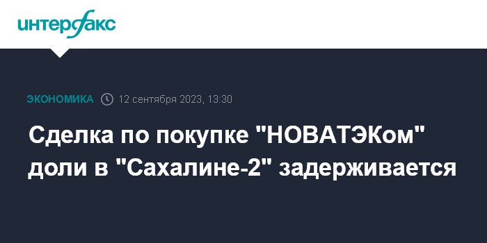 Москва. 12 сентября. INTERFAX.RU - Сделка по покупке "НОВАТЭКом" бывшей доли Shell в проекте "Сахалин-2" задерживается, сообщил журналистам глава "НОВАТЭКа" Леонид Михельсон, не пояснив причины.