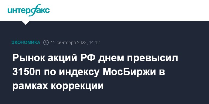 Рынок акций РФ днем превысил 3150п по индексу МосБиржи в рамках коррекции