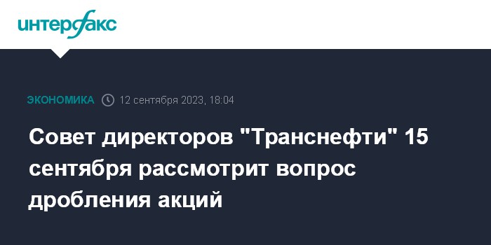 Совет директоров "Транснефти" 15 сентября рассмотрит вопрос дробления акций