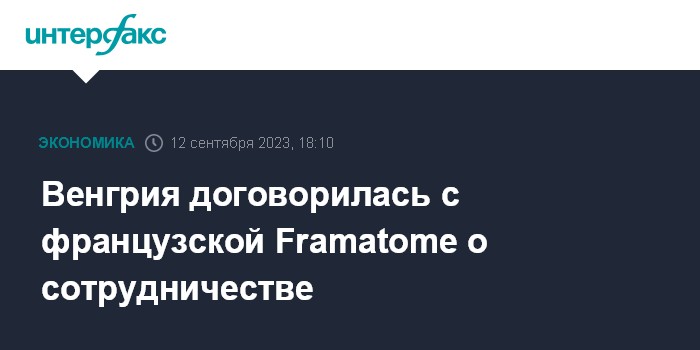 Москва. 12 сентября. INTERFAX.RU - Министерство энергетики Венгрии подписало с французской Framatome меморандум о взаимопонимании, предусматривающий, в частности, сотрудничество в области поставок топлива для АЭС, сообщило ведомство.