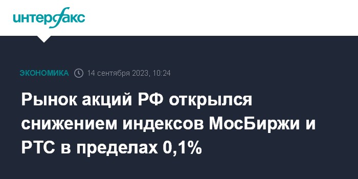 Рынок акций РФ открылся снижением индексов МосБиржи и РТС в пределах 0,1%