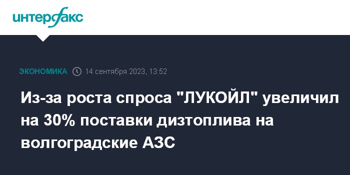 Из-за роста спроса "ЛУКОЙЛ" увеличил на 30% поставки дизтоплива на волгоградские АЗС