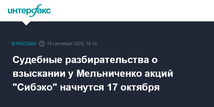 Судебные разбирательства о взыскании у Мельниченко акций "Сибэко" начнутся 17 октября