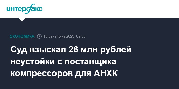 Суд взыскал 26 млн рублей неустойки с поставщика компрессоров для АНХК