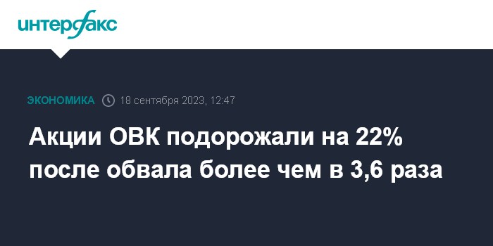 Акции ОВК подорожали на 22% после обвала более чем в 3,6 раза