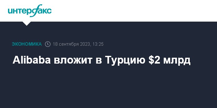 Москва. 18 сентября. INTERFAX.RU - Alibaba Group Holding планирует инвестировать $2 млрд в Турцию, в том числе, в строительство новых центров в Анкаре и Стамбуле, сообщает MarketWatch со ссылкой на Trendyol, турецкое подразделение Alibaba.