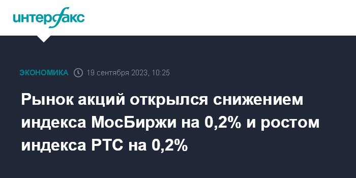 Рынок акций открылся снижением индекса МосБиржи на 0,2% и ростом индекса РТС на 0,2%