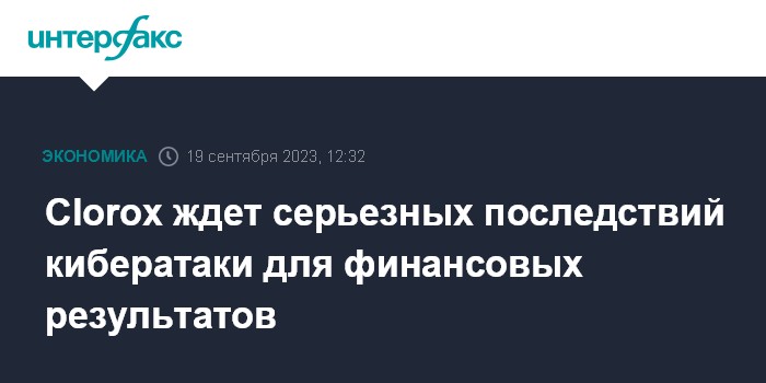 Москва. 19 сентября. INTERFAX.RU - Американский производитель бытовых товаров Clorox Co. ожидает, что августовская кибератака на информационные системы компании окажет существенное влияние на ее результаты в первом квартале 2024 финансового года (июль-сентябрь 2023 года), сообщает Financial Times.
