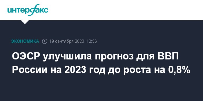 Москва. 19 сентября. INTERFAX.RU - Организация экономического сотрудничества и развития (ОЭСР) существенно улучшила прогноз для российской экономики на 2023 год, ожидает ее роста на 0,8%.
