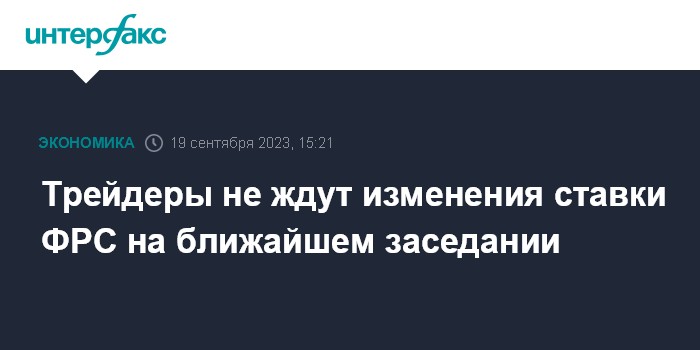 Москва. 19 сентября. INTERFAX.RU - Федеральная резервная система США начинает во вторник двухдневное заседание, по итогам которого, вероятно, не станет менять базовую процентную ставку. Подавляющее большинство инвесторов и аналитиков ожидает сохранения ставки Федрезервом на уровне 5,25-5,5% годовых - максимальном за 22 года.