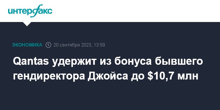 Qantas удержит из бонуса бывшего гендиректора Джойса до $10,7 млн