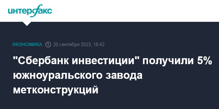 "Сбербанк инвестиции" получили 5% южноуральского завода метконструкций