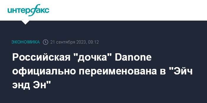 Документы о переименовании датированы 20 сентября 2023 года. С 12 сентября в "Эйч энд Эн Трейд" была переименована компания "Данон трейд".