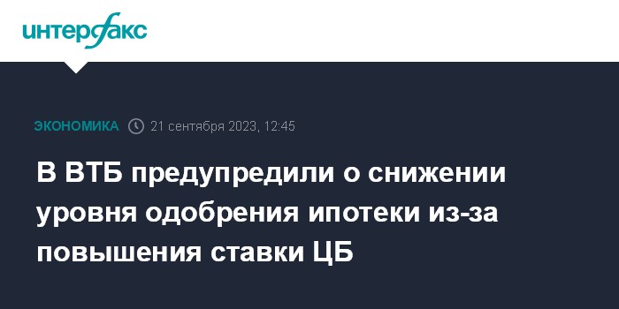 В ВТБ предупредили о снижении уровня одобрения ипотеки из-за повышения ставки ЦБ