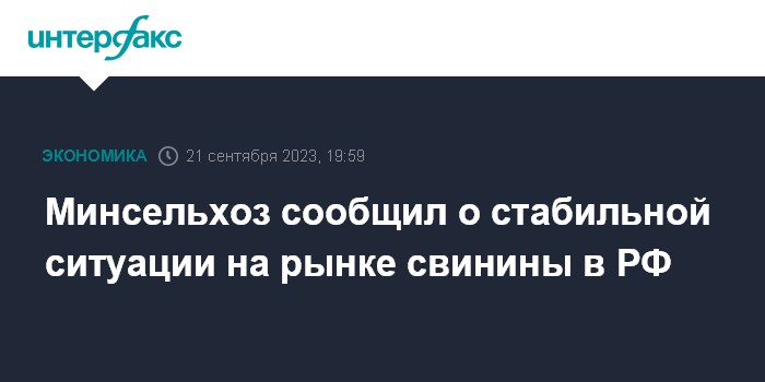 Москва. 21 сентября. INTERFAX.RU - Ситуация на рынке свинины в РФ стабильная, позитивная динамика сохранится, сообщает Минсельхоз.