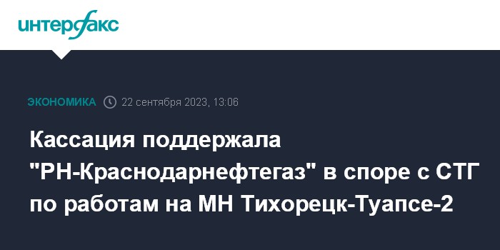 Кассация поддержала "РН-Краснодарнефтегаз" в споре с СТГ по работам на МН Тихорецк-Туапсе-2