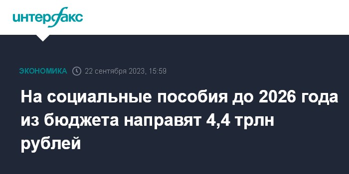 На социальные пособия до 2026 года из бюджета направят 4,4 трлн рублей