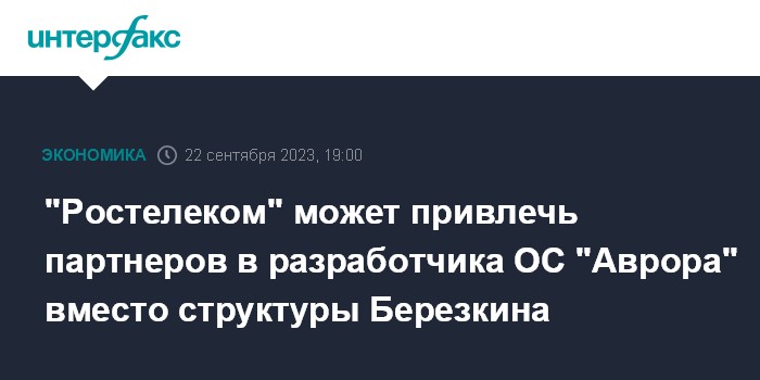 "Ростелеком" может привлечь партнеров в разработчика ОС "Аврора" вместо структуры Березкина