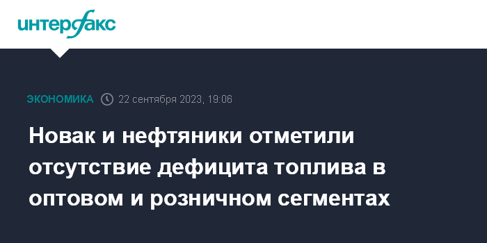 Новак и нефтяники отметили отсутствие дефицита топлива в оптовом и розничном сегментах
