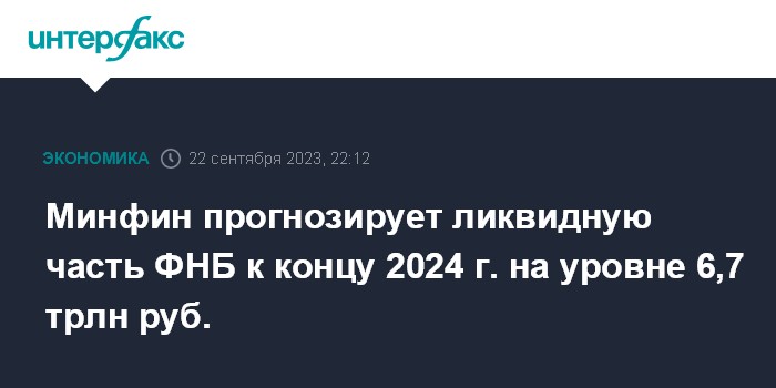 Москва. 22 сентября. INTERFAX.RU - Ликвидная часть Фонда национального благосостояния (ФНБ) к концу 2024 года будет на уровне 6,7 трлн рублей.