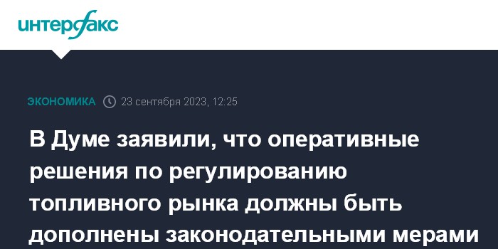 В Думе заявили, что оперативные решения по регулированию топливного рынка должны быть дополнены законодательными мерами