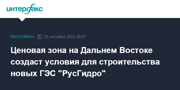 Москва. 25 сентября. INTERFAX.RU - Минэнерго РФ рассчитывает, что запуск с января 2024 г. ценовой зоны на Дальнем Востоке создаст условия для финансирования строительства новых ГЭС ПАО "РусГидро", рассказал журналистам замминистра энергетики Павел Сниккарс в кулуарах конференции "Совета рынка".
