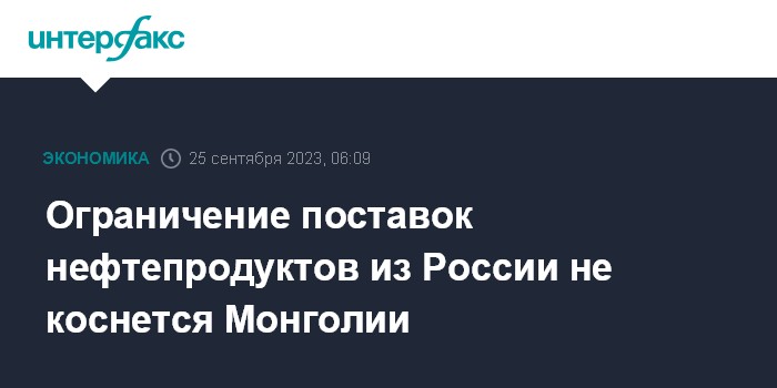 Москва. 25 сентября. INTERFAX.RU - Ограничение поставок российских нефтепродуктов не затронет Монголию, заявил председатель Великого государственного Хурала (монгольский парламент) Гомбожавын Занданшатар.
