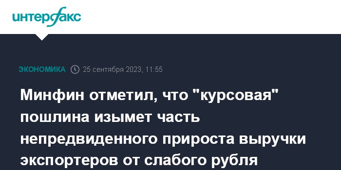 Минфин отметил, что "курсовая" пошлина изымет часть непредвиденного прироста выручки экспортеров от слабого рубля