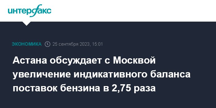 Астана обсуждает с Москвой увеличение индикативного баланса поставок бензина в 2,75 раза