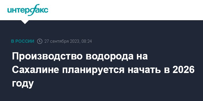 Производство водорода на Сахалине планируется начать в 2026 году