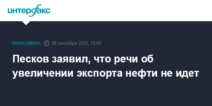 Песков заявил, что речи об увеличении экспорта нефти не идет