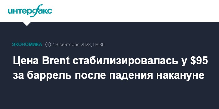 Цена Brent стабилизировалась у $95 за баррель после падения накануне